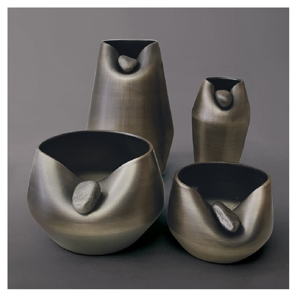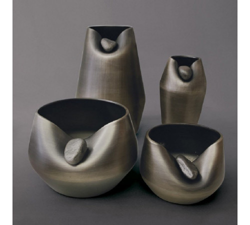 BACIO VASE CIN CERAMIC GOLDEN BLACK WITH STONE H20